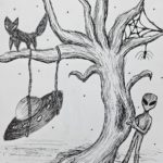 „Surrealistyczne drzewo” – rysunek czarnym długopisem. Modelunek światłocieniowy kreską. Plastyka w klasie 7. Czytaj dalej