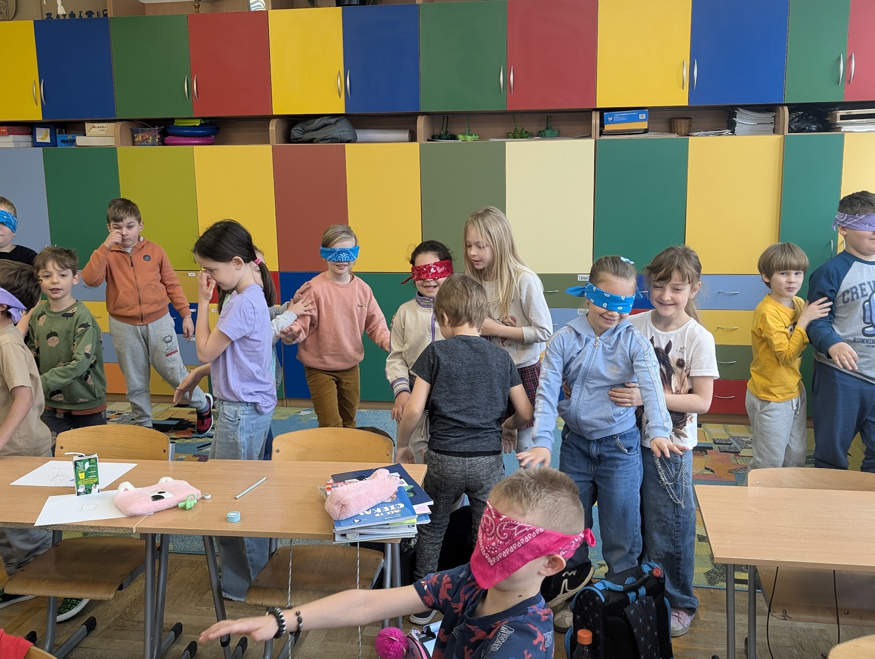 W klasach 1-3 odbyły się warsztaty „Jesteśmy różni i pomagamy sobie” inspirowane ideą Niebieskich Igrzysk, promującą tolerancję i empatię. Dzieci były zaangażowane i chętnie uczestniczyły w ćwiczeniach. Wykazały się dużą kreatywnością i empatią. Uczniowie zrozumieli, że różnice między ludźmi są czymś naturalnym i wartościowym, a pomaganie innym przynosi radość i satysfakcję.
