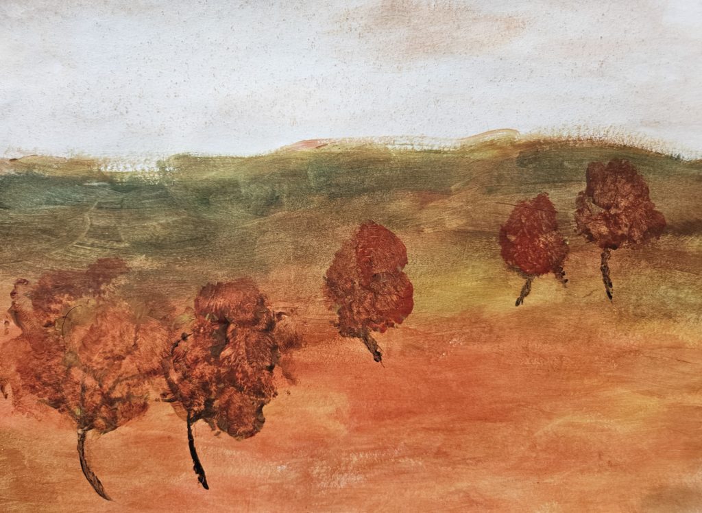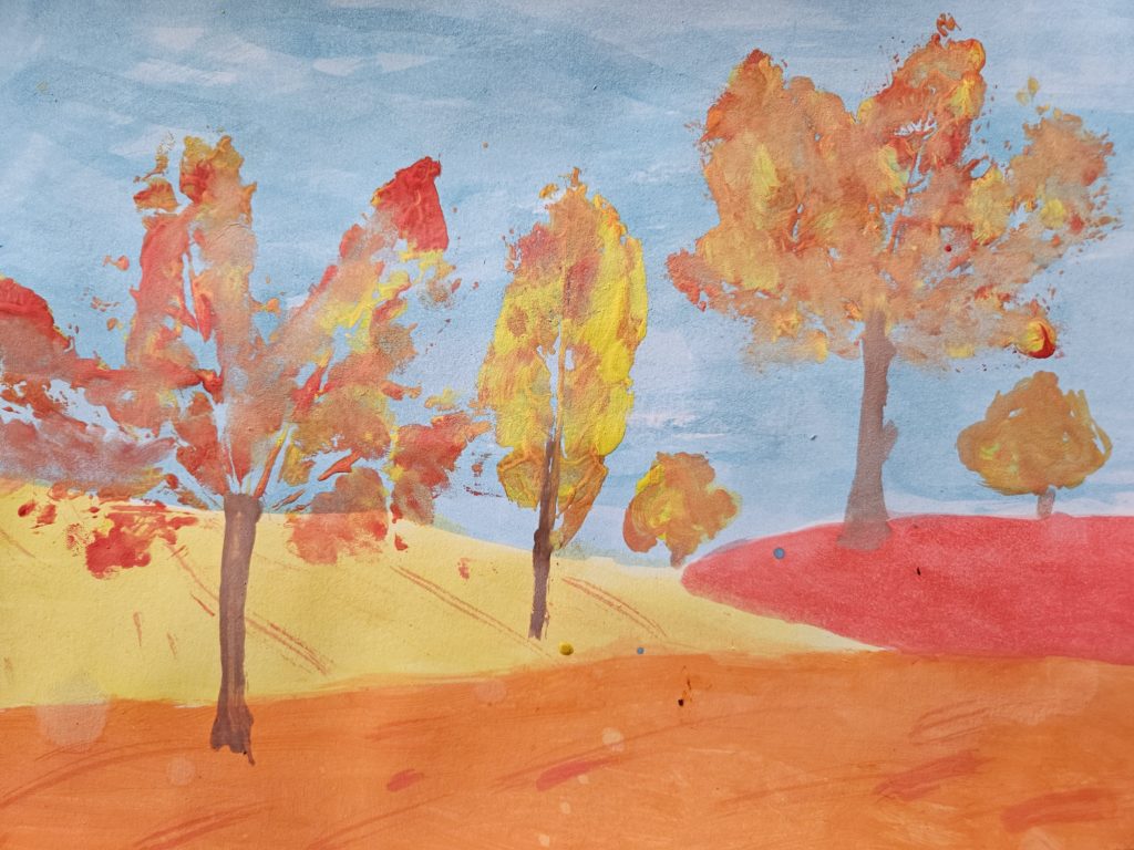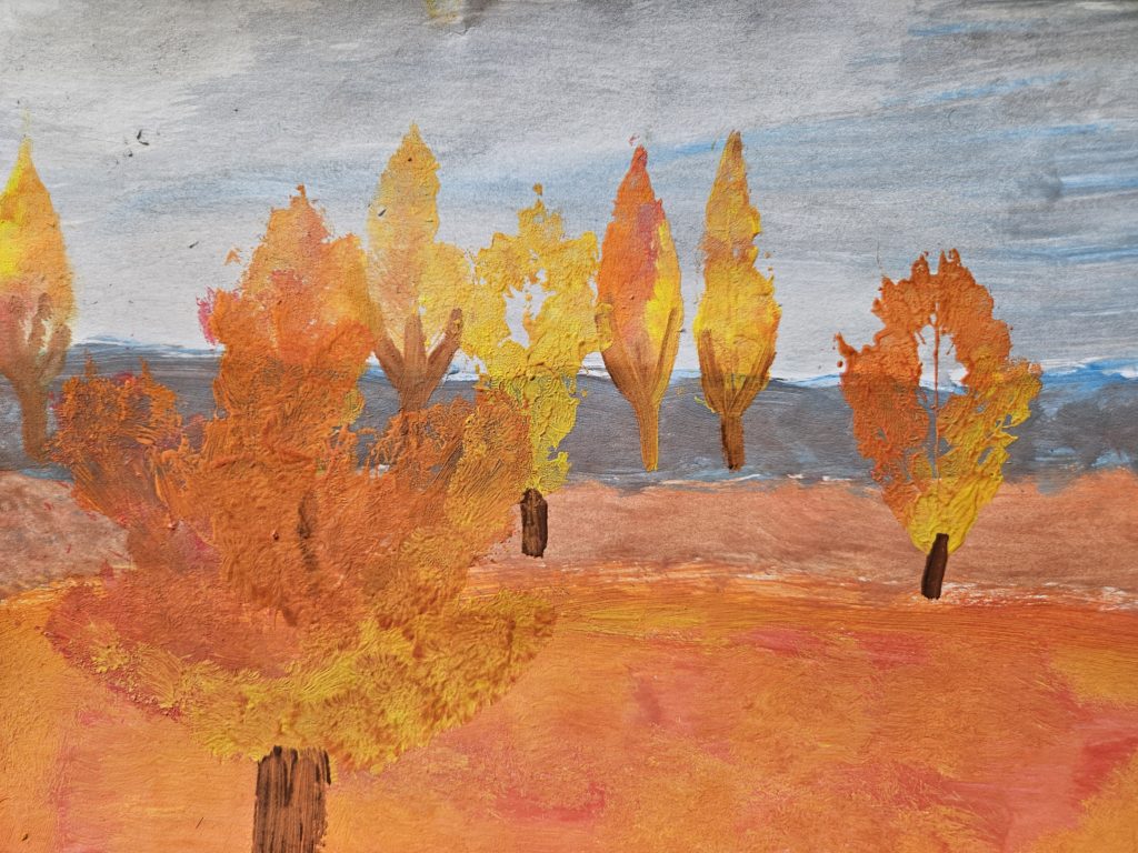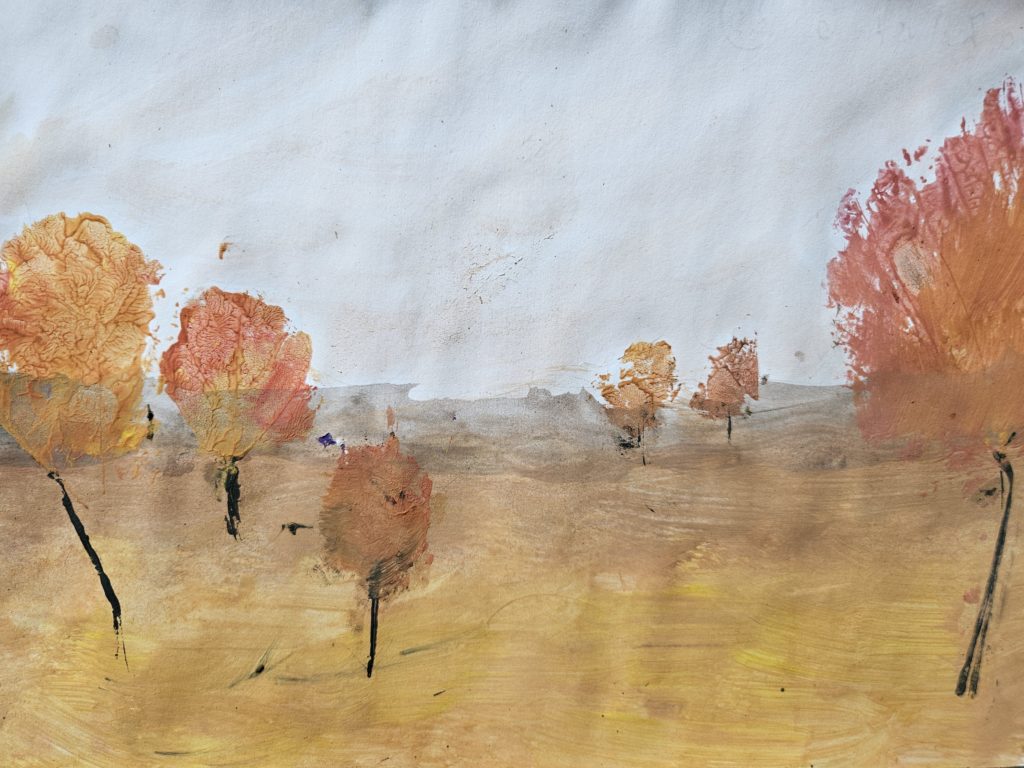 Krajobraz jesienny w monotypii Opublikowany 10 marca 2025 przez Ewa Siemaszko Plastyka kl. 6. „Krajobraz jesienny” w monotypii (odbitki z liści).