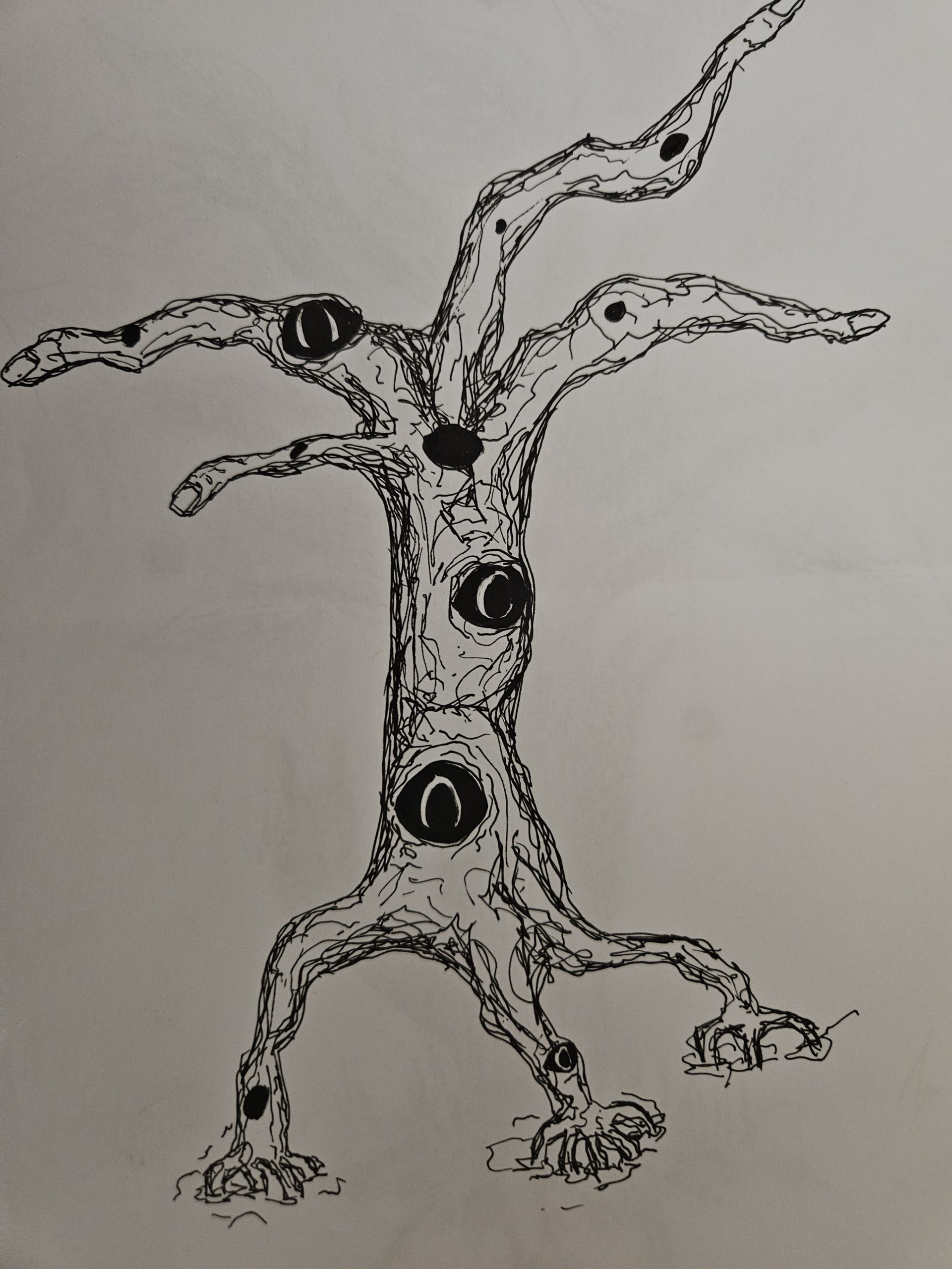obraz (63) Opublikowano 12 maja 2024 o 1920 × 2560 w „Surrealistyczne drzewo” – w rysunku czarnym długopisem