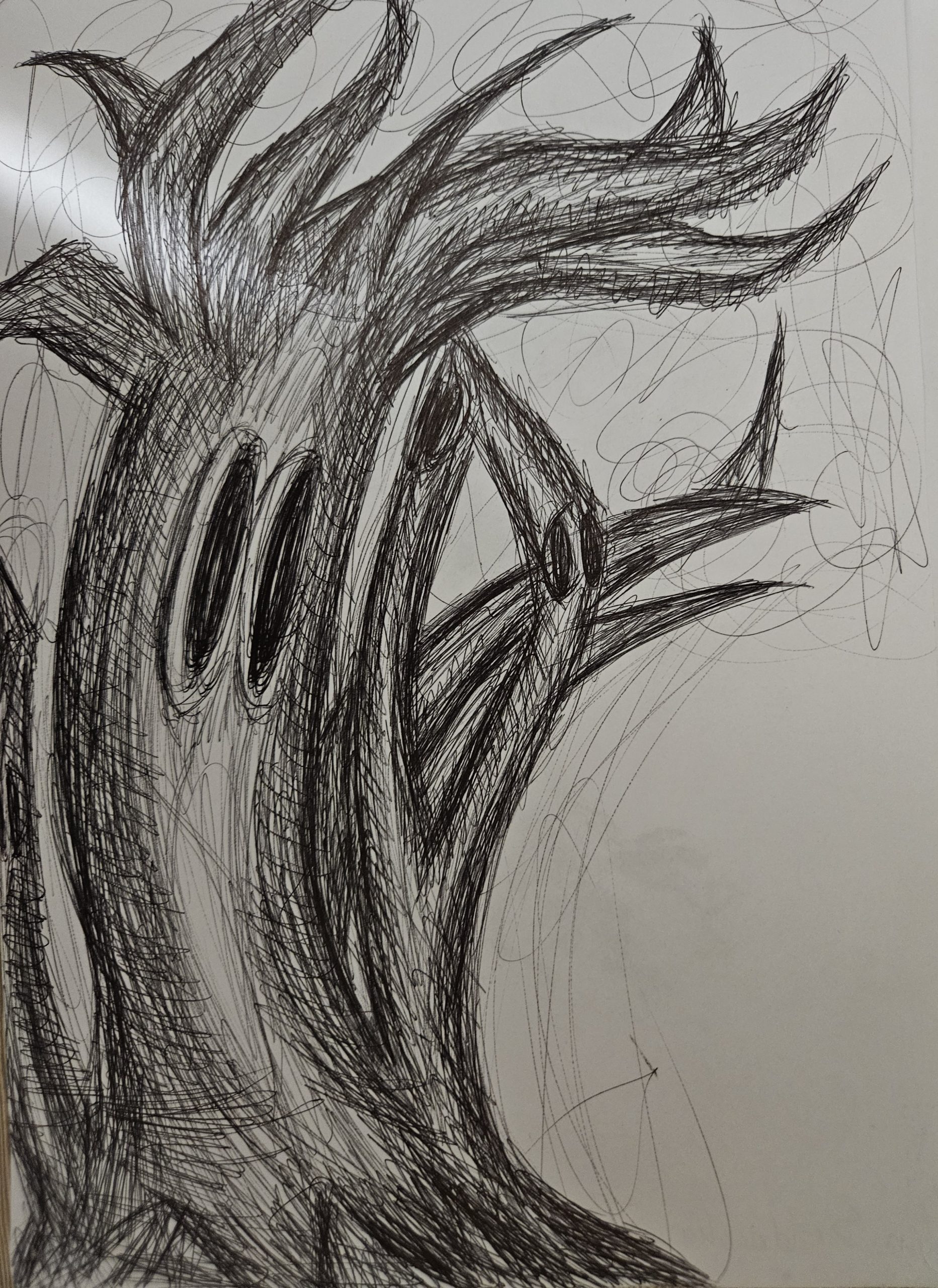obraz (66) Opublikowano 12 maja 2024 o 1865 × 2560 w „Surrealistyczne drzewo” – w rysunku czarnym długopisem