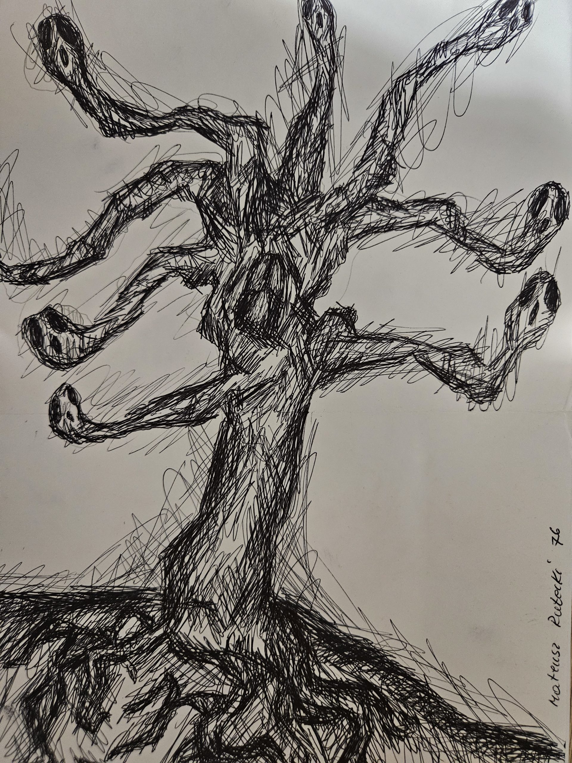 obraz (68) Opublikowano 12 maja 2024 o 1920 × 2560 w „Surrealistyczne drzewo” – w rysunku czarnym długopisem