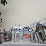 Instalacje artystyczne z elementów metalowych wykonane na lekcji techniki w klasach piątych.