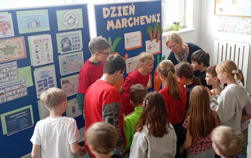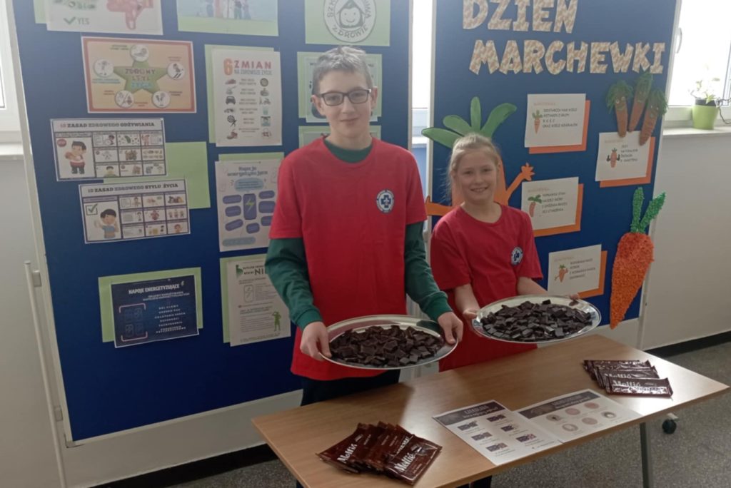 Kolejna akcja Tygodnia Zdrowia w naszej szkole za nami. Dużo się w tym czasie działo. W ramach obchodów mieliśmy zajęcia na temat zdrowego stylu życia, degustacje zdrowych i kolorowych przekąsek, ćwiczenia aerobowe, Niebieskie Igrzyska oraz Dzień Marchewki. Tworzyliśmy także plakaty pt. „Zdrowe początki, pełna nadziei przyszłość”. Naszej kadrze w ramach obchodów zaproponowaliśmy przerwy z ziołową herbatką, pomiary ciśnienia tętniczego i pulsu. Ostatni dzień akcji był smakowity, gdyż z okazji Dnia Czekolady społeczność szkolna promowała walory gorzkiego przysmaku podczas degustacji.